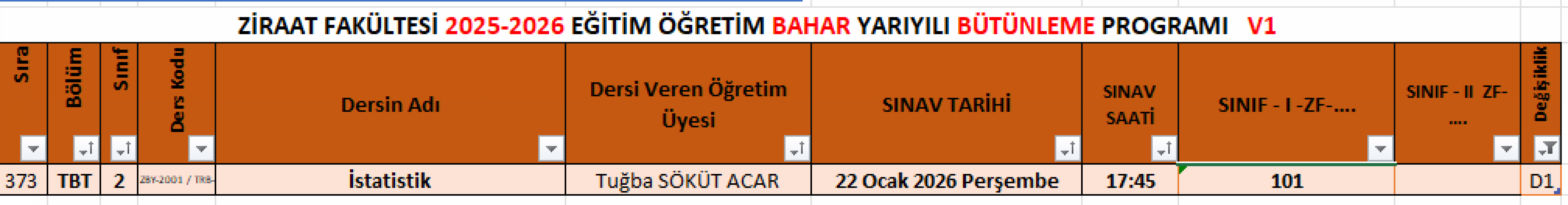 Ziraat Fakültesi 2025-2026 Bütünleme Sınav Programı ekte sunulmuştur. Sınavlarınızda dileklerimizle.