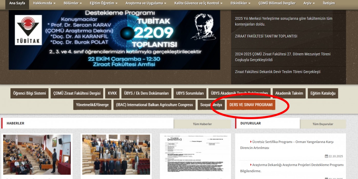 ZİRAAT FAKÜLTESİ 2025-2026 EĞİTİM ÖĞRETİM GÜZ YARIYILI VİZE PROGRAMI ORTA MENÜDE "DERS VE SINAV PROGRAMI" BAŞLIKLI BÖLÜMÜMÜZDE İLAN EDİLMİŞTİR. TÜM ÖĞRENCİLERİMİZE 2025-2026 EĞİTİM ÖĞRETİM YILINDA BAŞARILAR DİLEKLERİMİZLE.