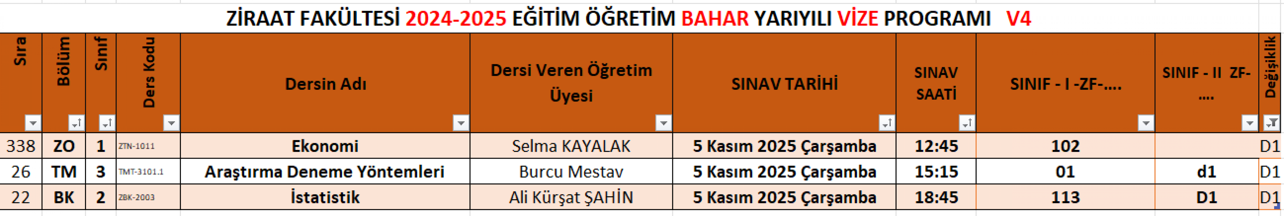 ZİRAAT FAKÜLTESİ 2025-2026 EĞİTİM ÖĞRETİM GÜZ YARIYILI VİZE PROGRAMI EKTE SUNULMUŞTUR. TÜM ÖĞRENCİLERİMİZE 2025-2026 EĞİTİM ÖĞRETİM YILINDA BAŞARILAR DİLEKLERİMİZLE.